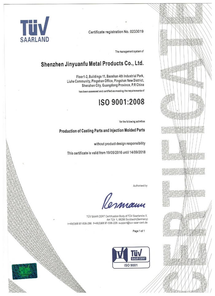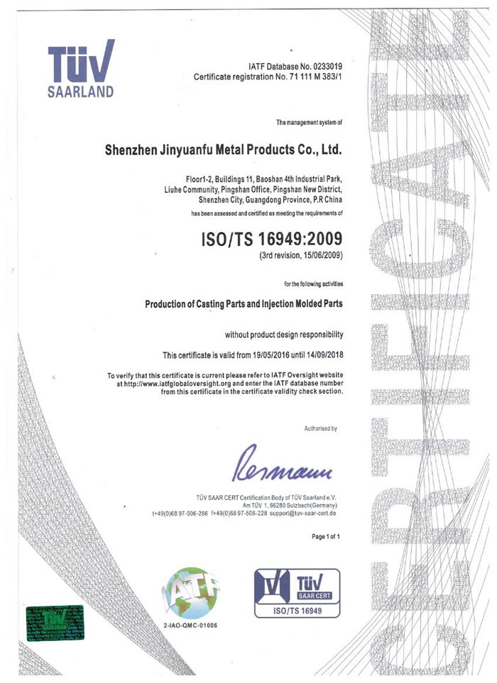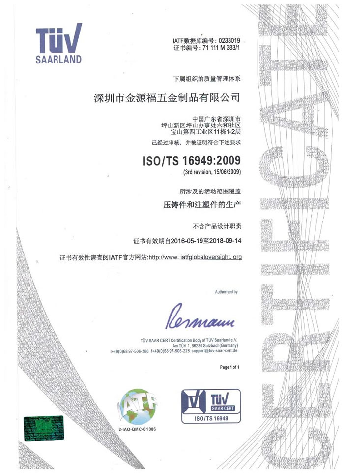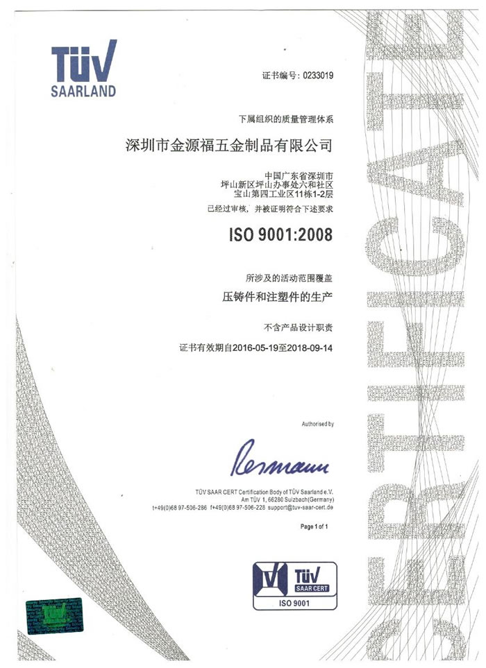 深圳市金源福五金制品有限公司成立于2003年。公司擁有8000多平方米生產(chǎn)廠地、開發(fā)與管理精英人才、技術專業(yè)、設備精良、交通便利、服務周全、具體設計、開發(fā)、制模、出樣、生產(chǎn)到成品出貨一體化模式生產(chǎn)廠家。已通過ISO9001:2008ISO1440/TS16949:2009國際質(zhì)量體系認證。專業(yè)生產(chǎn)鋅合金壓鑄、鋁合金壓鑄產(chǎn)品、汽車配件、汽車后視鏡支架、車載導航散熱器、LED散熱器、LED燈罩、數(shù)碼電子五金結構件、家具五金裝飾件、標牌(LOGO)等五金壓鑄產(chǎn)品。